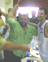 Ακολούθησαν έξαλα πανηγύρια. Παίκτες και οπαδοί αγκαλιασμένοι, με τον